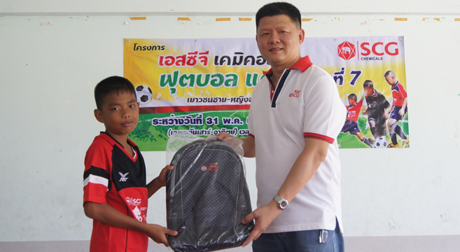 เอสซีจี เคมิคอลส์ จัดพิธีมอบประกาศนียบัตรให้แก่น้องๆ เยาวชนในเขตเทศบาลเมืองมาบตาพุด อายุระหว่าง 5-15 ปี ที่ผ่านการอบรมและฝึกทักษะความรู้พื้นฐานฟุตบอลจากโค้ชมืออาชีพ ในโครงการ “เอสซีจี เคมิคอลส์ ฟุตบอลแคมป์ รุ่นที่ 7” ซึ่งจัดขึ้นระหว่างวันที่ 31 พฤษภาคม – 29 มิถุนายน 2557 ที่ผ่านมา ณ สนามโรงเรียนบ้านมาบตาพุด โดยได้รับความสนใจจากผู้ปกครอง ส่งบุตรหลานเข้าร่วมกิจกรรมกว่า 110 คน นอกจากจะเป็นการใช้เวลาว่างให้เกิดประโยชน์ในช่วงวันเสาร์อาทิตย์แล้วน้องๆ ที่เข้าร่วมโครงการยังได้เรียนรู้กฎกติกา มารยาท ระเบียบวินัย และน้ำใจนักกีฬา อีกด้วย
