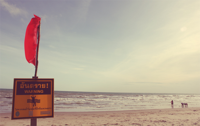 “ธงแดง” สัญลักษณ์เตือน “อันตราย” ห้ามลงเล่นน้ำทะเล ในช่วงมรสุมของทุกปี ทะเลมีคลื่นลมแรง บางชายหาดมีทั้งคลื่นใต้น้ำและกระแสน้ำวน อาจพัดพาคนที่ลงเล่นน้ำจมดิ่งสู่ท้องทะเลได้ คิดสักนิดก่อนตัดสินใจลงเล่นน้ำ “สังเกต” ก่อนถูก “สังเวย” เพื่อความปลอดภัยของคุณและคนที่คุณรัก